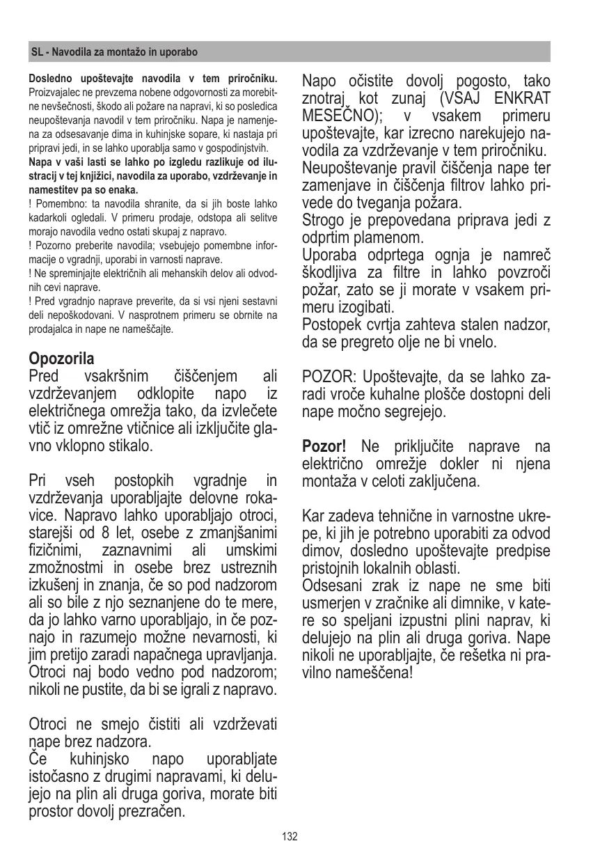 La hotte ne doit JAMAIS être utilisée comme un support, sauf indication contraire.