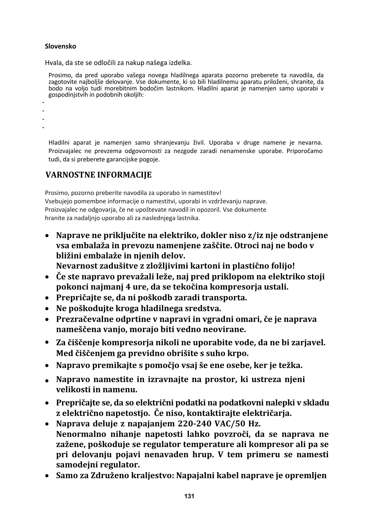 - dans les fermes-auberges, pour la clientèle des hôtels, motels et autres lieux de type résidentiel, - dans les chambres d'hôtes, - chez la restauration et autres services similaires, ce produit ne convient pas à la vente au détail. Cet appareil doit être utilisé uniquement pour conserver de la nourriture ; tout autre usage est considéré comme dangereux et le fabricant ne sera pas tenu responsable en cas de mauvaise utilisation. Il est donc recommandé de prendre connaissance des conditions de garantie.