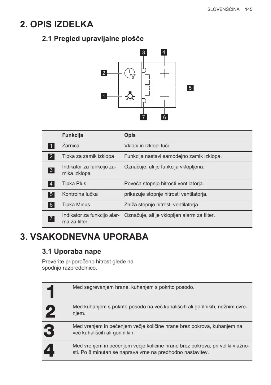 2. Appuyez sur la touche pour allumer la hotte. Pour augmenter la vitesse du ventilateur, appuyez à nouveau sur la touche. pour réduire la vitesse Appuyez sur du ventilateur. Les voyants LED du bandeau s’allument en fonction de la vitesse du ventilateur sélectionné. L’éclairage la hotte fonctionne indépendamment des autres fonctions de la hotte. Pour éclairer la surface de cuisson, appuyez sur le symbole d’éclairage . La fermeture du bac n’a aucun effet sur l’éclairage de la hotte. Pour éteindre le ventilateur, continuez jusqu’à ce d’appuyer sur la touche que le ventilateur de la hotte s’arrête ou fermez le bac de la hotte. La hotte enregistre le dernier réglage de la vitesse du ventilateur lors de la fermeture du bac. La hotte fonctionnera à cette vitesse du ventilateur lorsque le bac sera à nouveau tiré.