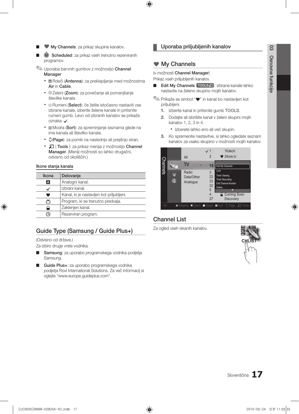 kanalov za vsako skupino v možnosti mojih kanalov. Channels Manager. (Meniji možnosti so lahko drugačni, odvisno od okoliščin.) ¦¦ Uporaba priljubljenih kanalov 03 Osnovne funkcije