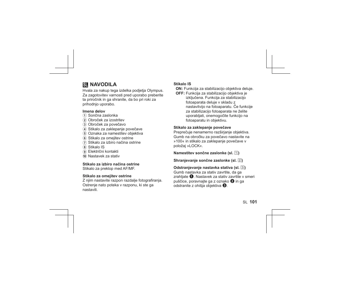 Visite nuestra página web http://www.olympus-europa.com o Ilame al: 5 Marca de montagem 6 Interruptor limitador de focagem 7 Interruptor de modo de focagem 8 Interruptor IS 9 Contactos elétricos 0 Encaixe do tripé Interruptor de modo de focagem 6 Comutator de limitare a focalizării 7 Comutator pentru modul de focalizare 8 Comutator IS 9 Contacte electrice