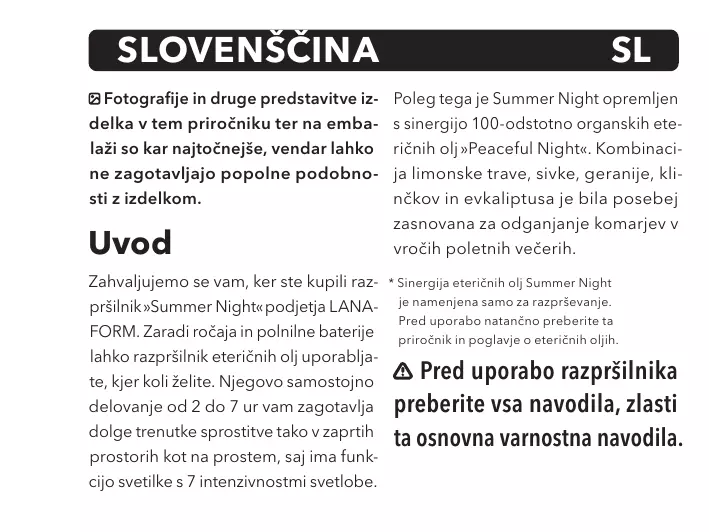 SUMMER NIGHT - Difuzor eteričnih olj LANAFORM - Notice d'utilisation et mode d'emploi gratuit