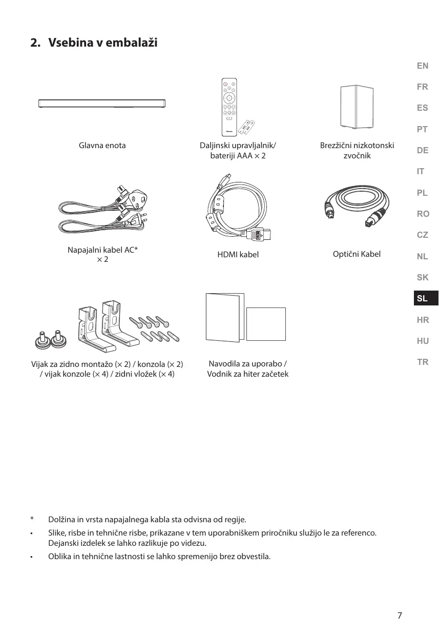 Glavna enota 9 Brezžični nizkotonski zvočnik 10 Daljinski upravljalnik 10