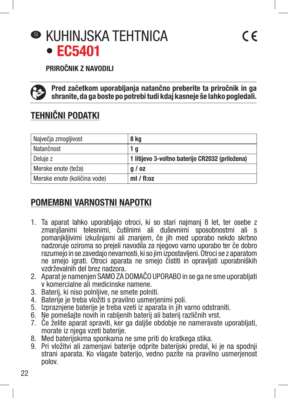 NAVODILA ZA UPORABO EC5401 ELSAY