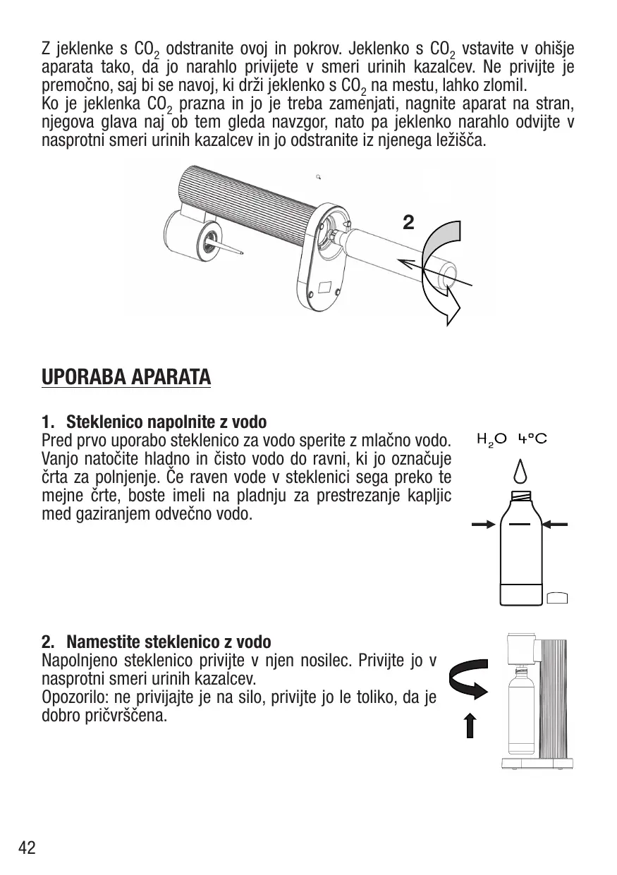 za vodo ves čas čista, shranjujte pa jo z odvitim pokrovom. OPOZORILA ZA JEKLENKE S CO2.
