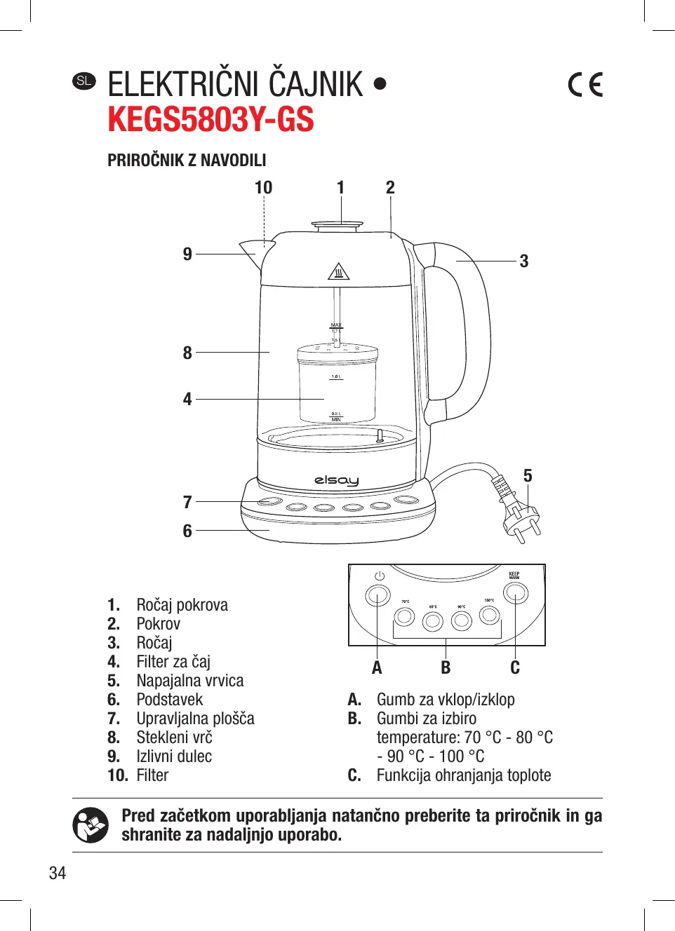 NAVODILA ZA UPORABO 1,7L - KEGS5803Y-GS ELSAY