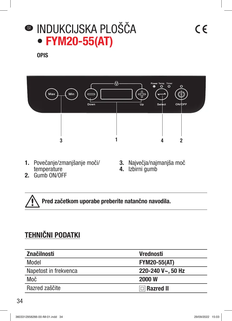 FYM20-55(AT) - Indukcijska plošča ELSAY - Brezplačna navodila za uporabo