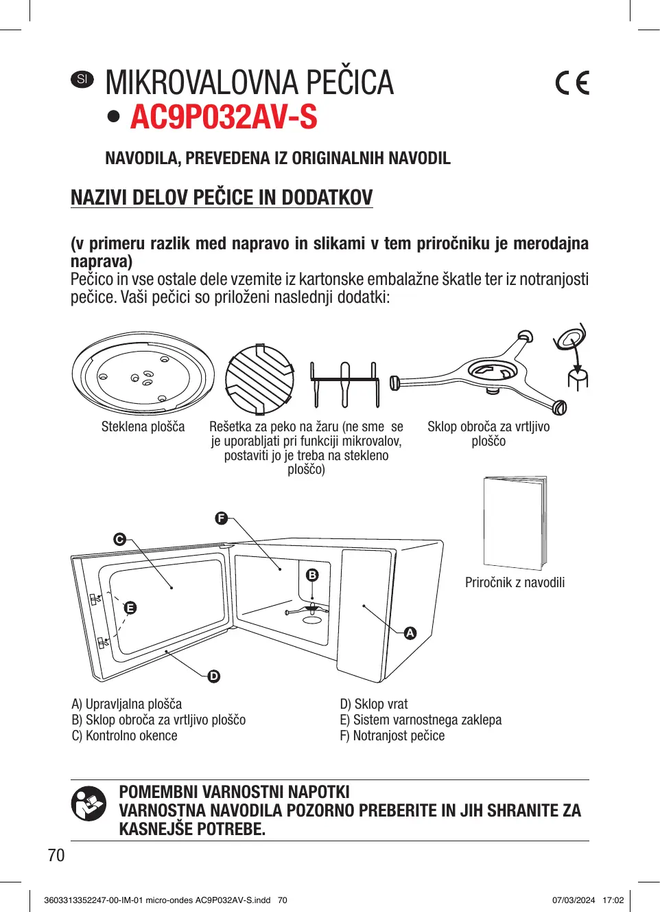 3603313352247-00-IM-01 micro-ondes AC9P032AV-S.indd 18 E) Sistema de bloqueo de seguridad F) Interior del microondas