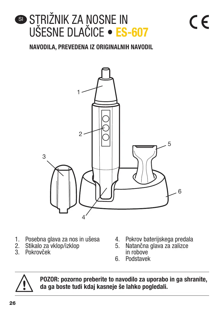 POZOR: pozorno preberite to navodilo za uporabo in ga shranite, da ga boste tudi kdaj kasneje še lahko pogledali.
