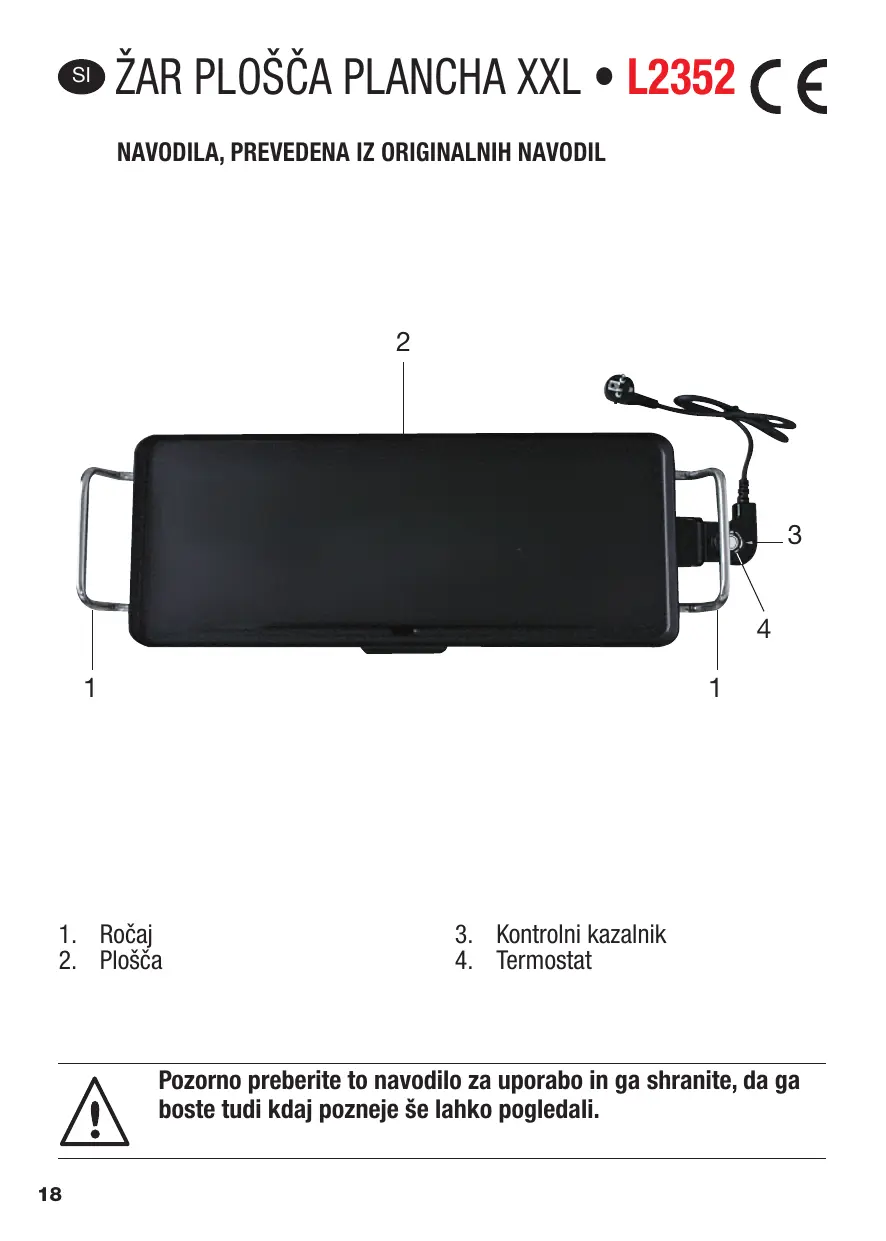 Pozorno preberite to navodilo za uporabo in ga shranite, da ga boste tudi kdaj pozneje še lahko pogledali.