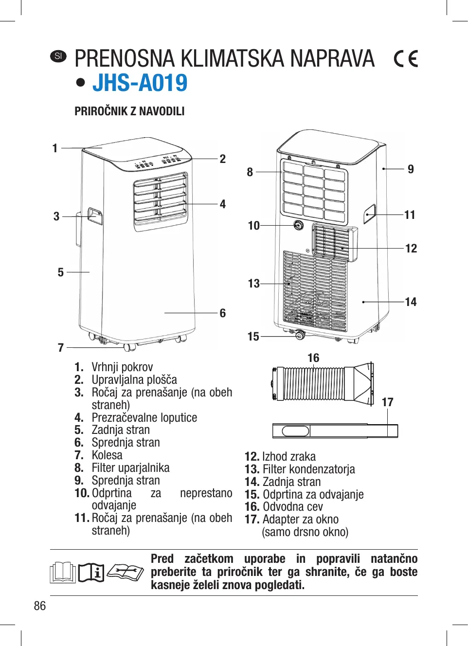 (samo drsno okno) Pred začetkom uporabe in popravili natančno preberite ta priročnik ter ga shranite, če ga boste kasneje želeli znova pogledati.