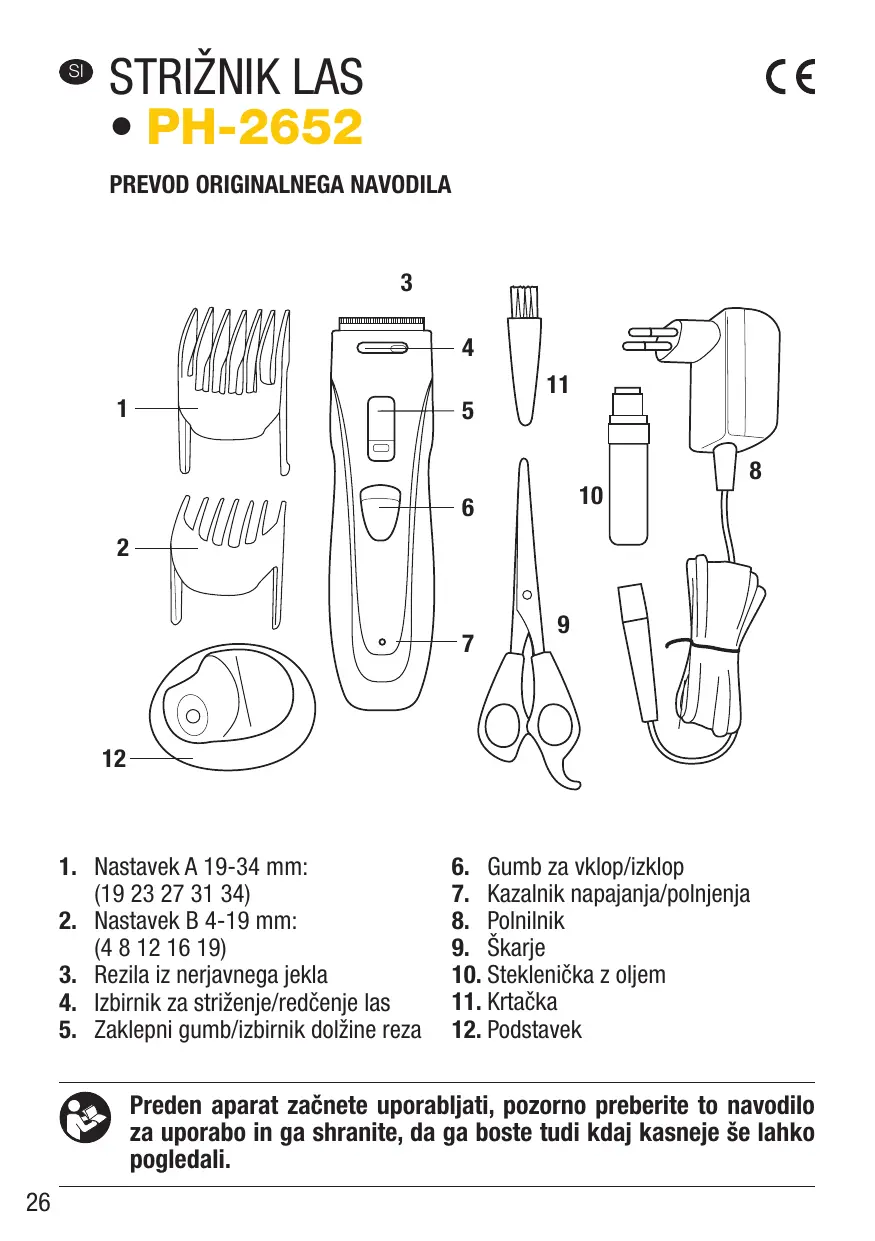 PH-2652 - Strižnik las ELSAY - Brezplačna navodila za uporabo