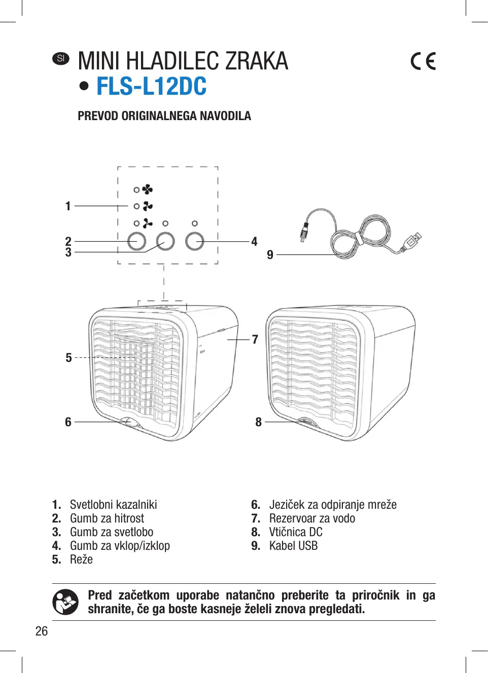 Pred začetakom uporabe natančno preberite ta priročnik in ga shranite,Če ga boste kasnejeŽeleli znova pregledati.