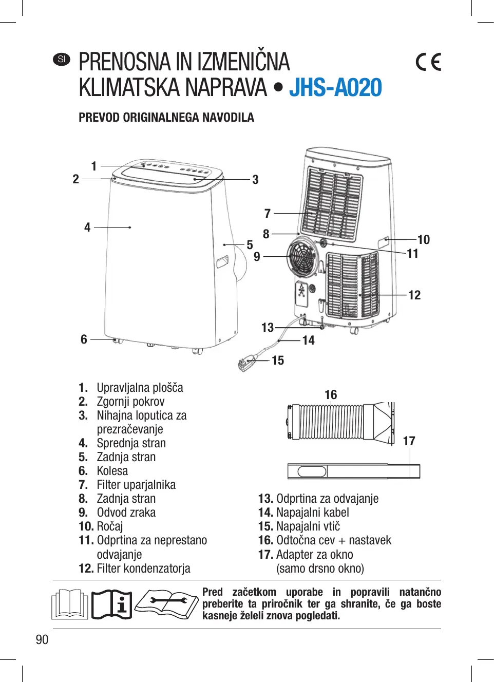 (samo drsno okno) Pred začetkom uporabe in popravili natančno preberite ta priročnik ter ga shranite, če ga boste kasneje želeli znova pogledati.