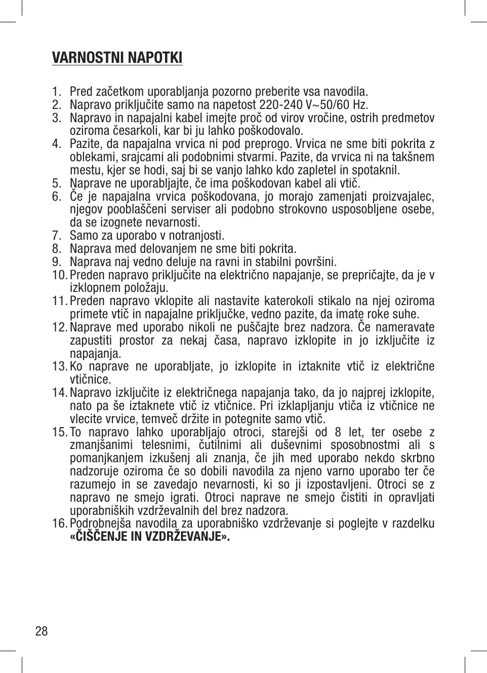 3. Éloignez l’appareil et le câble des sources de chaleur, des objets pointus ou de tout ce qui pourrait l’endommager. 4. N’installez pas le câble sous les tapis. Ne couvrez pas le câble avec des vêtements, des chemises ou d’autres éléments similaires. Éloignez le câble des zones de circulation afin d’éviter tout risque de trébuchement. 5. Ne laissez pas l’appareil fonctionner si le câble ou la fiche est endommagé. 6. Si le câble d’alimentation est endommagé, il doit être remplacé par le fabricant, son service après-vente ou des personnes de qualification similaire afin d’éviter un danger. 7. Utilisation intérieure uniquement. 8. Ne couvrez pas la machine pendant son utilisation. 9. Faites fonctionner l’appareil uniquement sur une surface horizontale plane et stable. 10. Assurez-vous que l’appareil est éteint avant de le connecter. 11. Assurez-vous que vos mains sont sèches avant d’actionner ou d’ajuster tout interrupteur sur le produit ou de toucher la fiche et les prises. 12. Ne laissez jamais cet appareil sans surveillance lorsqu’il est en cours d’utilisation. Éteignez et déconnectez l’appareil lorsque vous quittez la pièce. 13. Arrêtez l’appareil et le débranchez la prise de courant de l’appareil lorsqu’il n’est pas utilisé. 14. Pour déconnecter l’appareil, arrêtez l’appareil, puis débranchez la fiche. Ne tirez pas sur le cordon. 15. Cet appareil peut être utilisé par des enfants âgés d’au moins 8 ans et par des personnes ayant des capacités physiques, sensorielles ou mentales réduites ou dénuées d’expérience ou de connaissance, s’ils (si elles) sont correctement surveillé(e)s ou si des instructions relatives à l’utilisation de l’appareil en toute sécurité leur ont été données et si les risques encourus ont été appréhendés. Les enfants ne doivent pas jouer avec l’appareil. Le nettoyage et l’entretien par l’usager ne doivent pas être effectués par des enfants sans surveillance. 16. En ce qui concerne l’entretien par l’usager, veuillez voir la section «NETTOYAGE ET ENTRETIEN» pour plus de détails.