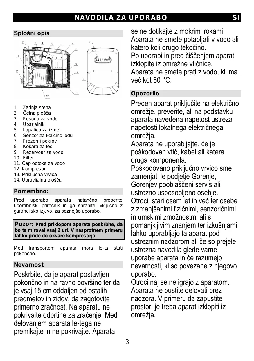 IMC 1200B - Stroj za led GORENJE - Notice d'utilisation et mode d'emploi gratuit