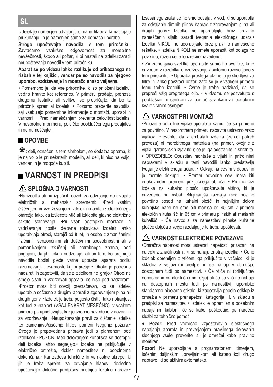 FR Le produit est conçu pour l’aspiration des fumées et des vapeurs de cuisson et est destiné au seul usage domestique.