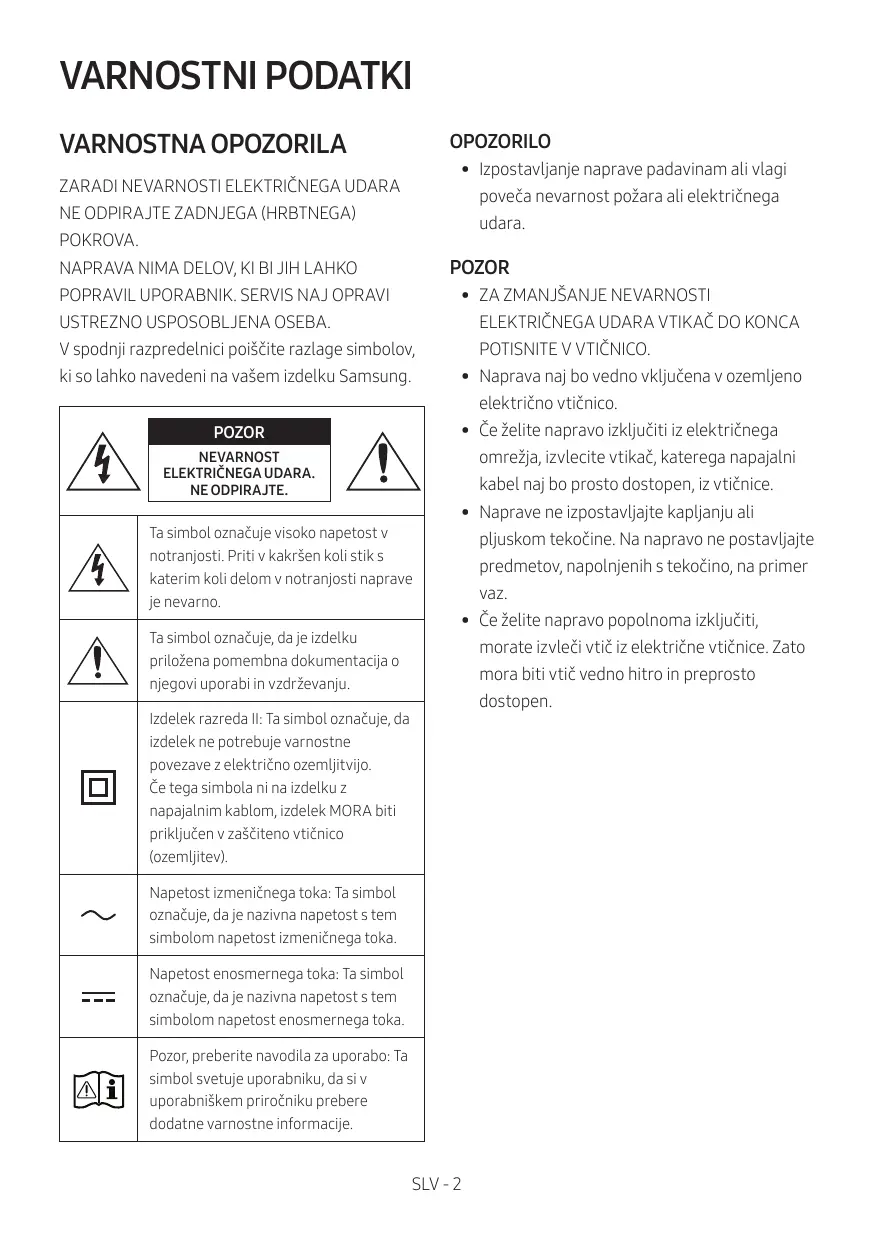 Za veë informacij o elektrinem napajanju in porabi elektriëne energije si oglejte oznako na izdelku (Oznaka: Spodhnii del glavne enote zvoënika Soundbar)
