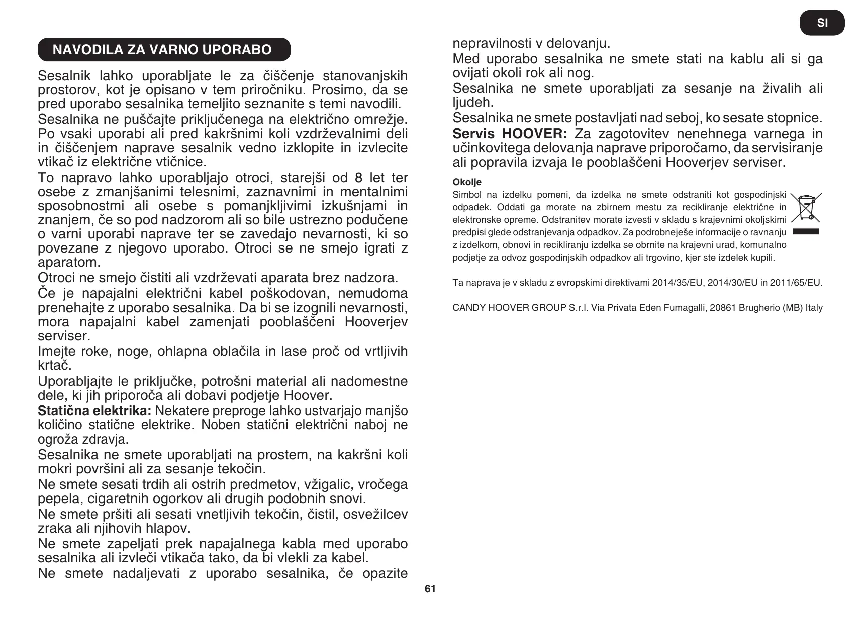 Téléchargez la notice de votre Sesalnik brez vrečke au format PDF gratuitement ! Retrouvez votre notice HP710PAR - HOOVER et reprennez votre appareil électronique en main. Sur cette page sont publiés tous les documents nécessaires à l'utilisation de votre appareil HP710PAR de la marque HOOVER.