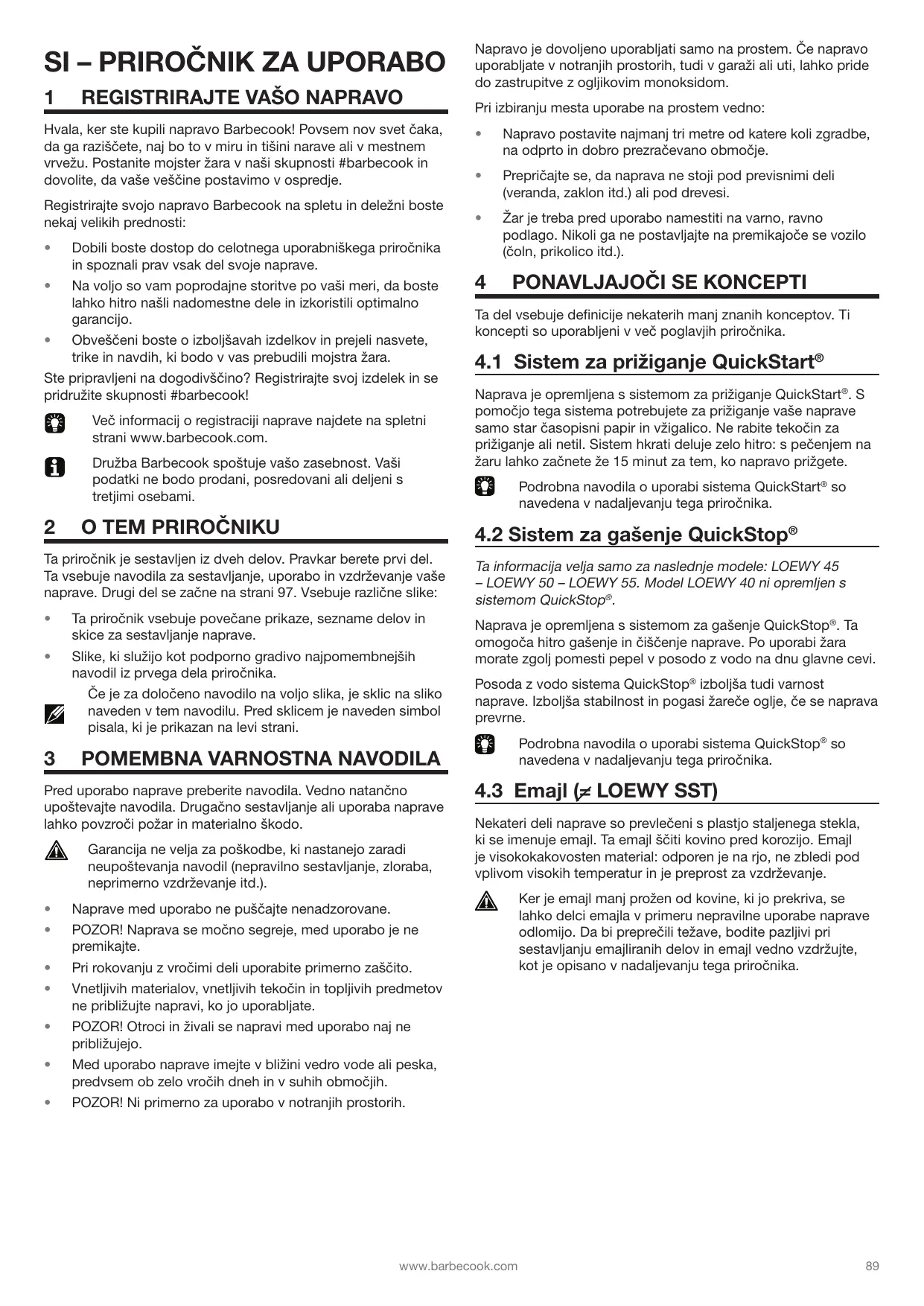 LOEWY 40, LOEWY 45, LOEWY 50 / 50 SST, LOEWY 55 / 55 SST - Žar BARBECOOK - Notice d'utilisation et mode d'emploi gratuit