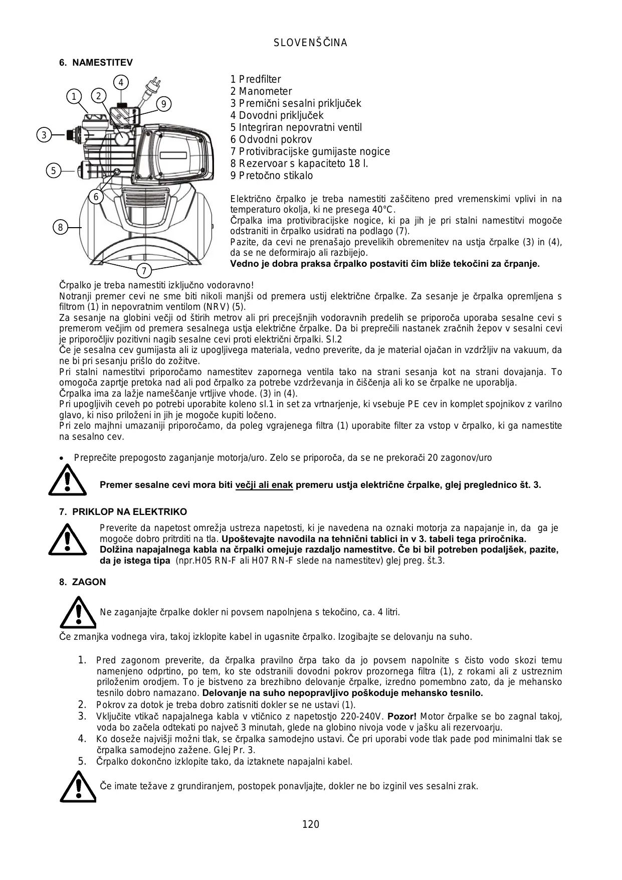 8. DÉMARRAGE VAN Ne pas démarrer la pompe sans l'avoir entièrement remplie d'eau, environ 4 litres.
