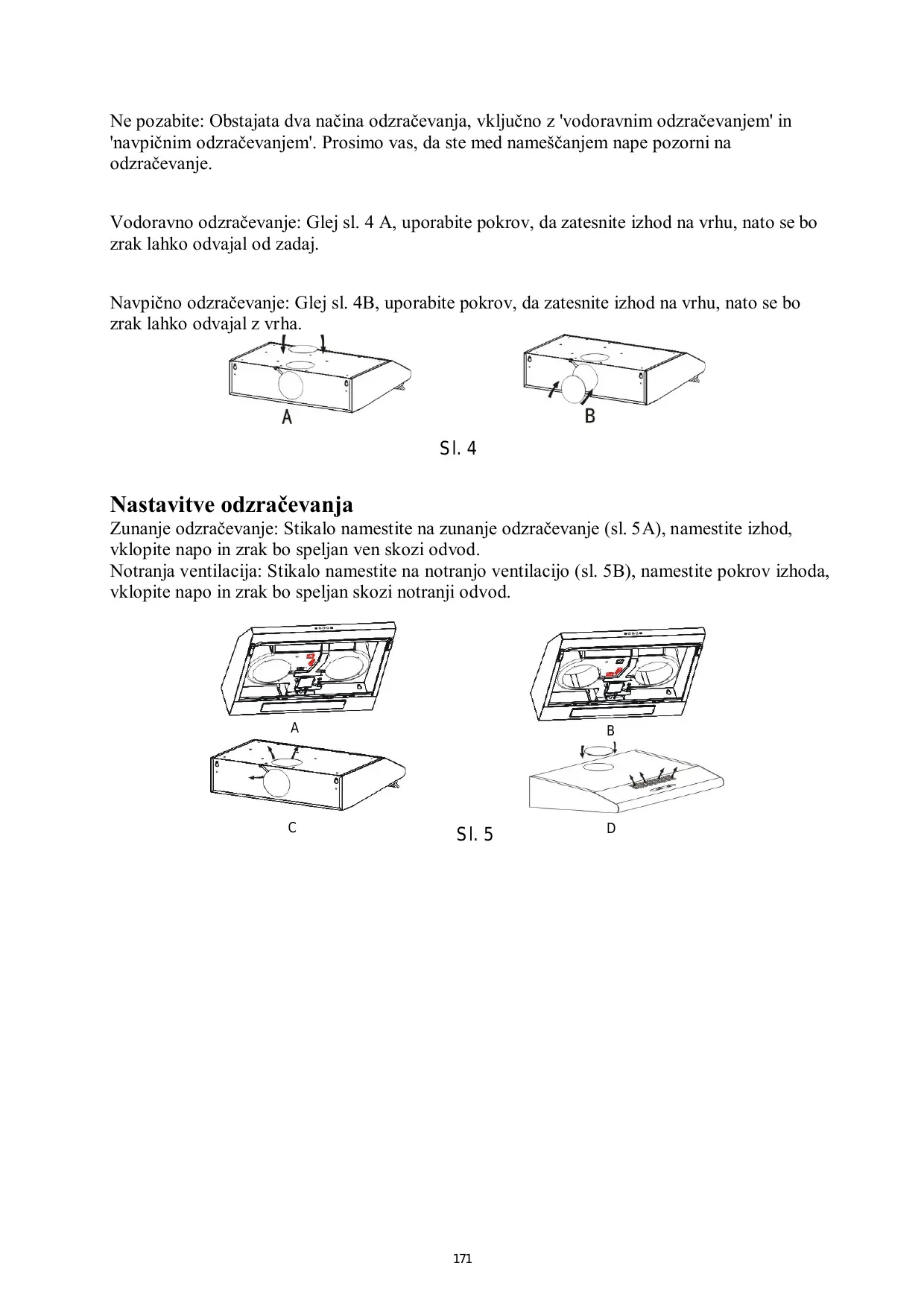 5B), installez le couvercle de la sortie, allumez la hotte aspirante, l'air peut alors être évacué par la sortie intérieure.