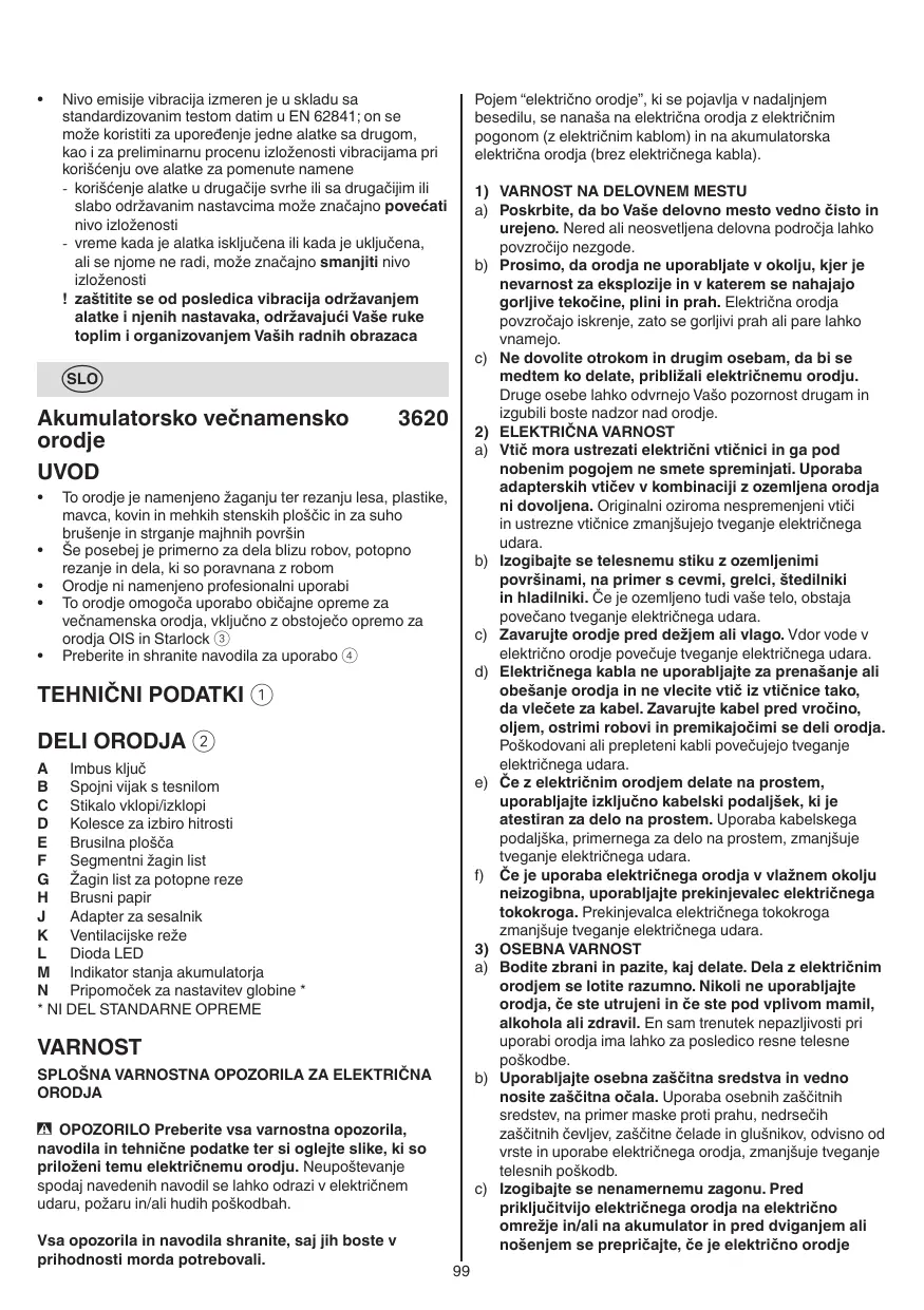 VARNOSTNA NAVODILA ZA AKUMULATORSKA VEËNAMENSKA ORODJA