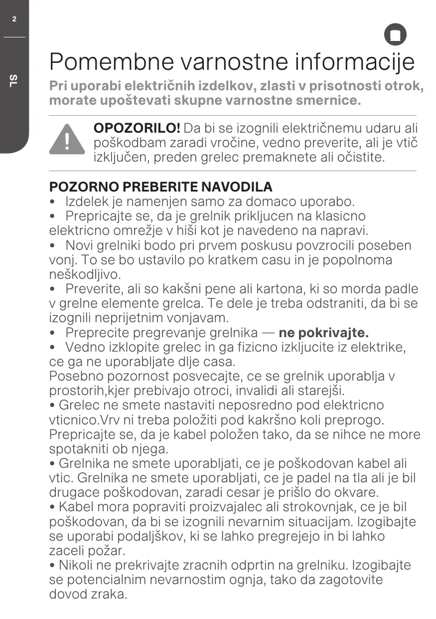 + Faire particulièrement attention si le chauffage est utilisé dans des pièces où résident des enfants ou des personnes