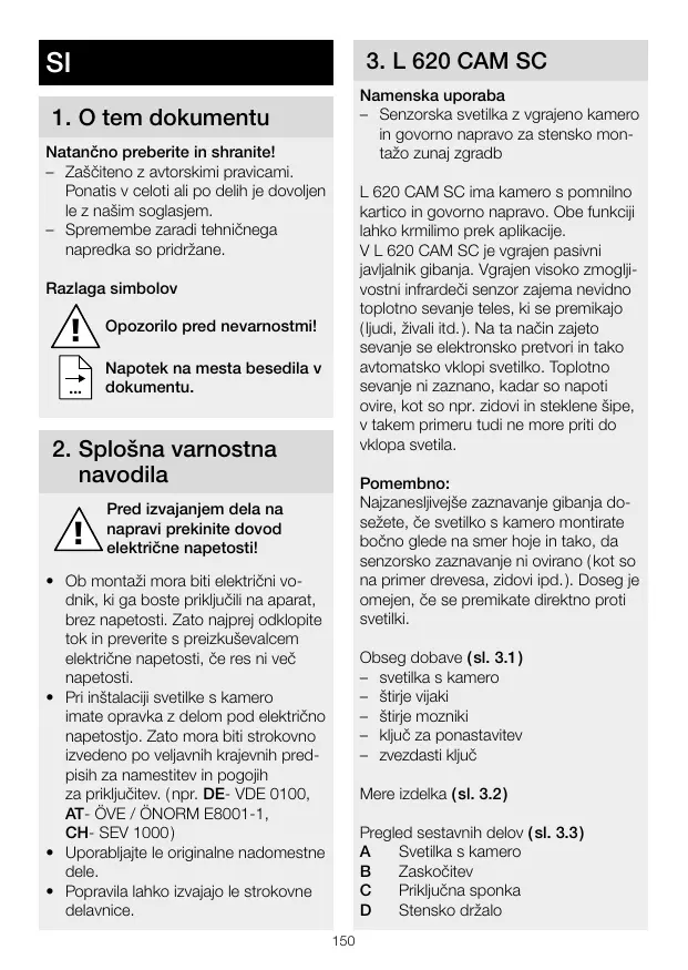 Téléchargez la notice de votre Nadzorna kamera au format PDF gratuitement ! Retrouvez votre notice L620 - STEINEL et reprennez votre appareil électronique en main. Sur cette page sont publiés tous les documents nécessaires à l'utilisation de votre appareil L620 de la marque STEINEL.