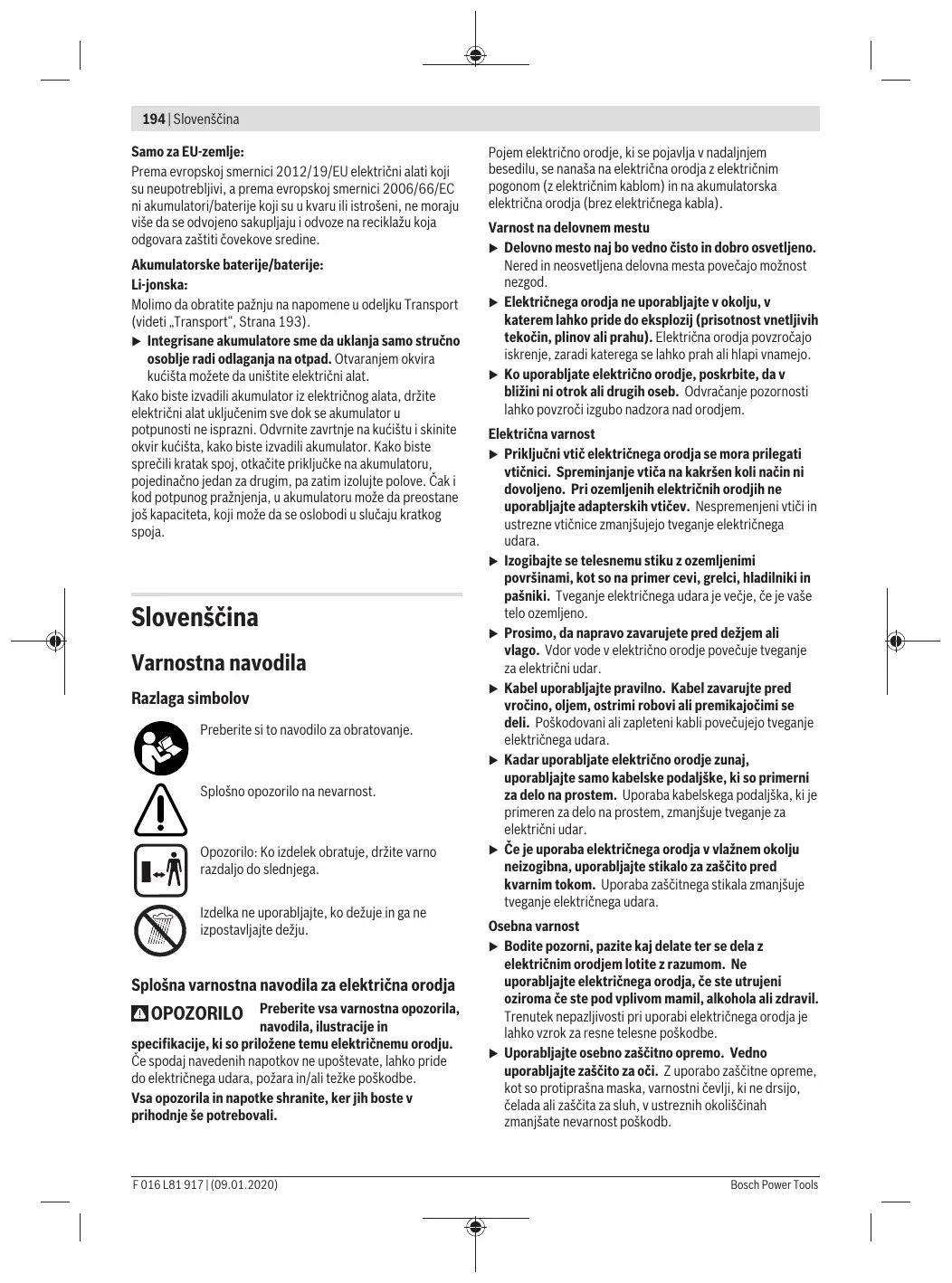 Ne jetez pas les outils électroportatifs etes ac- cus/piles avec les ordures ménagères !