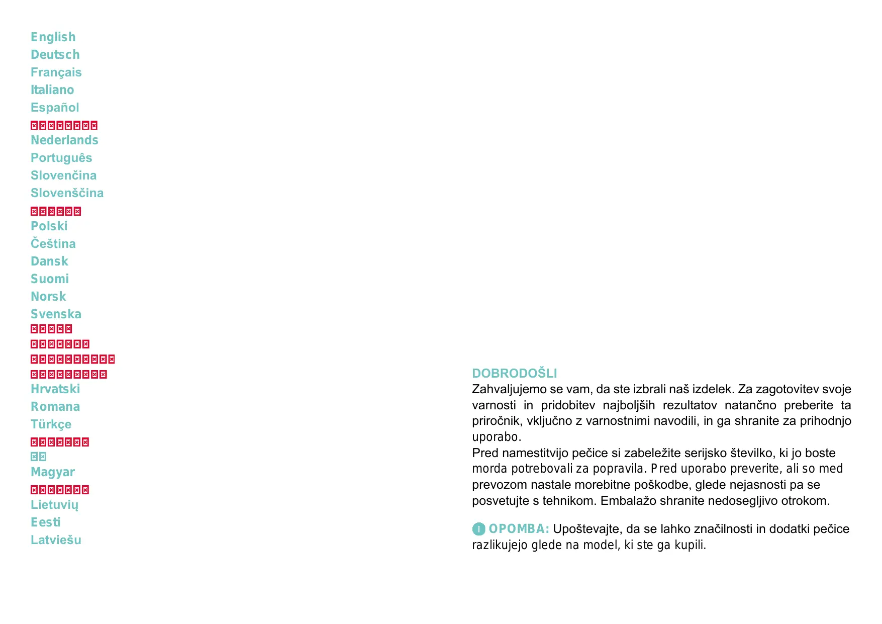 © REMARQUE: veuillez noter que les caractéristiques et les accessoires du four peuvent varier en fonction du modèle que vous avez acheté.