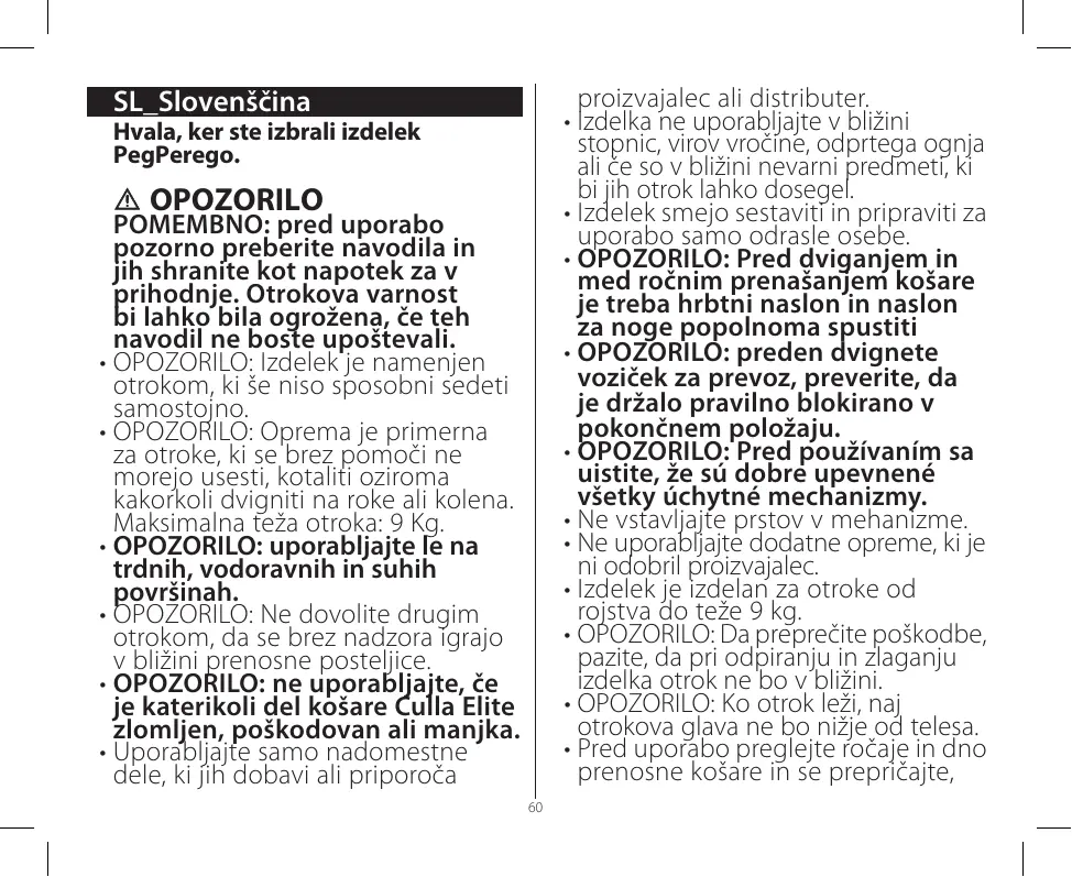 Téléchargez la notice de votre Otroški vozički in dodatki au format PDF gratuitement ! Retrouvez votre notice Culla Elite - PEG PEREGO et reprennez votre appareil électronique en main. Sur cette page sont publiés tous les documents nécessaires à l'utilisation de votre appareil Culla Elite de la marque PEG PEREGO.