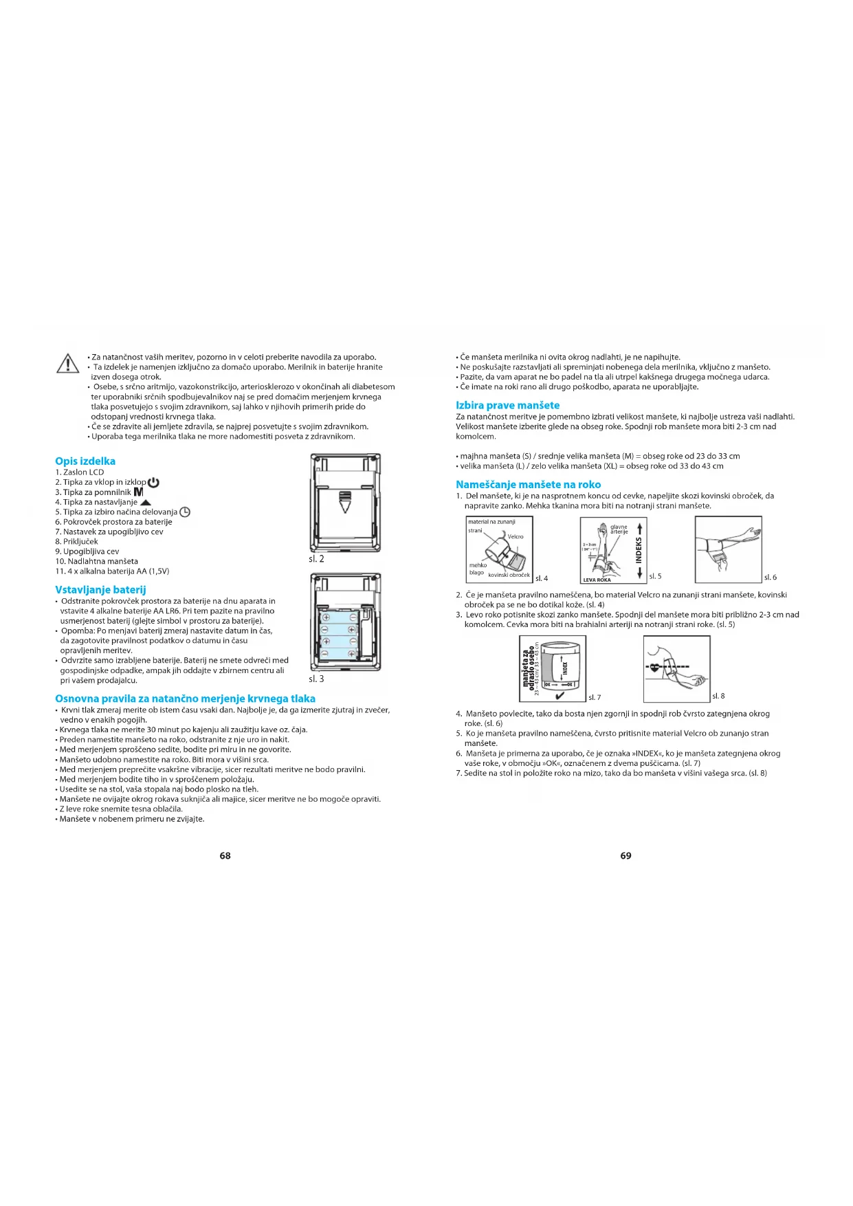 - Preden namestite manšeto na roko, odstranite z nje uro in nakit.