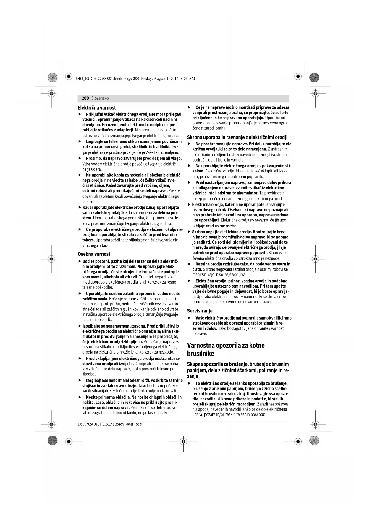Prosimo, da med uporabo električnega orodja ne dovo-