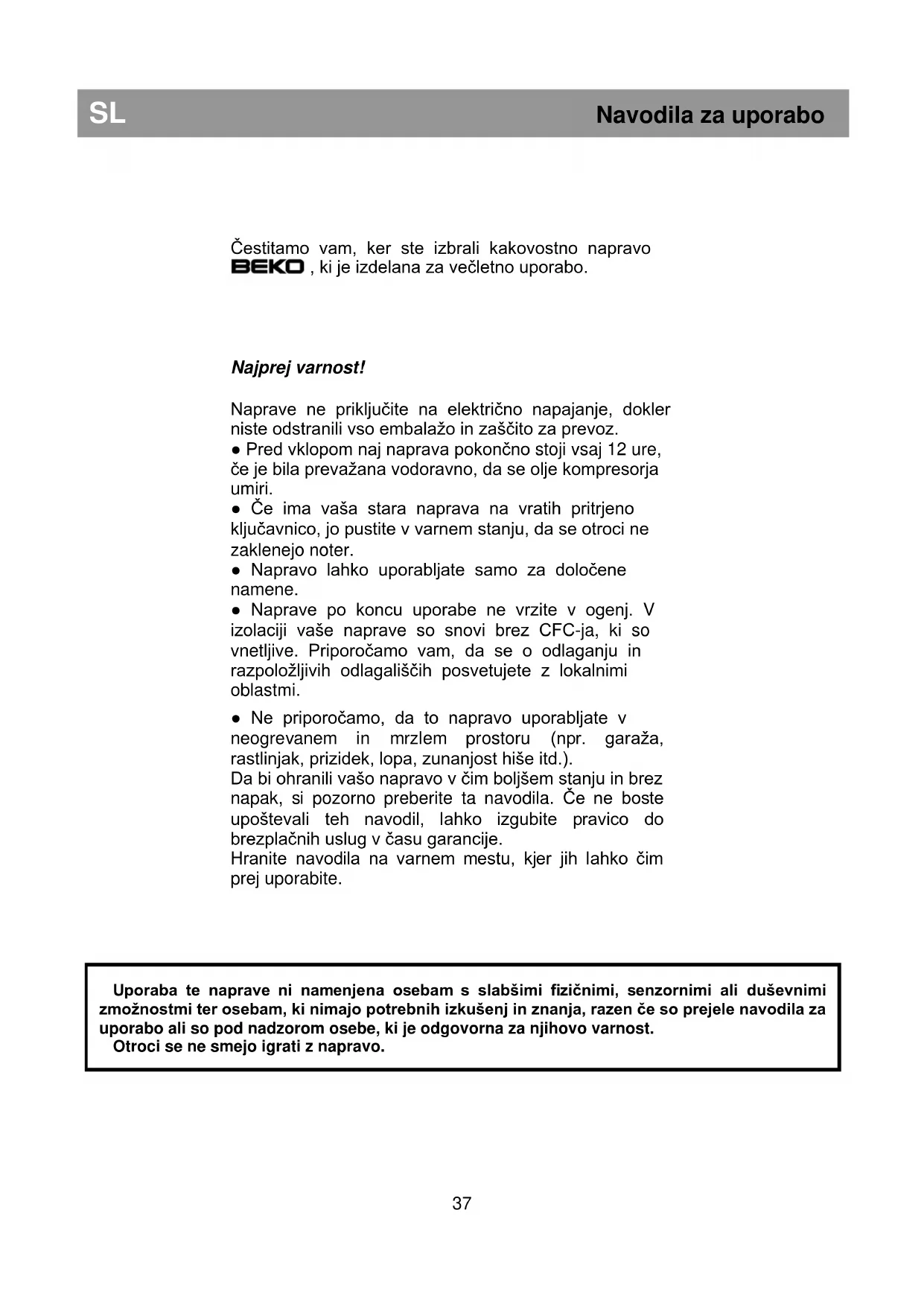 Uporaba te naprave ni namenjena osebam s slabšimi fizičnimi, senzornimi ali duševnimi