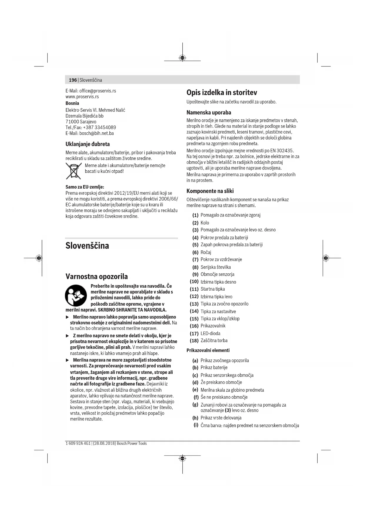 Slovenščina | 197 Bosch Power Tools 1 609 92A 4G1 | (28.08.2018)198 | Slovenščina