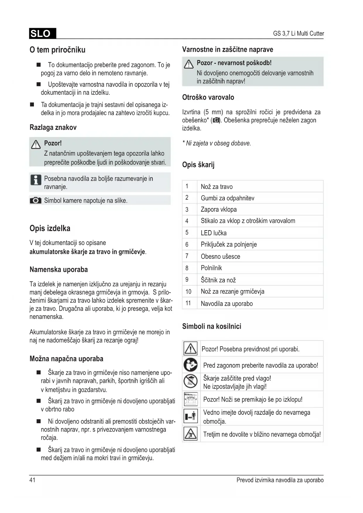Škarje za travo in grmičevje niso namenjene upo-