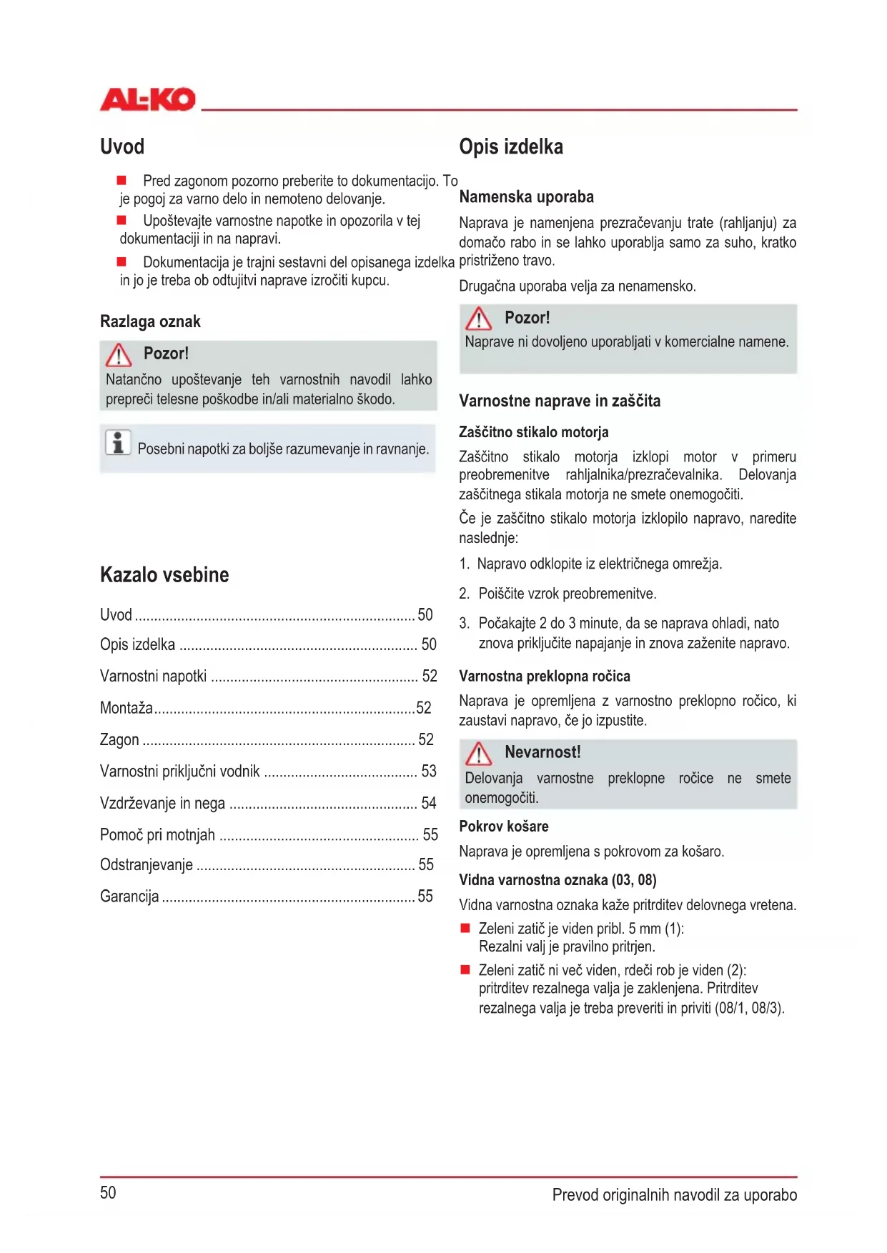 Prevod originalnih navodil za uporabo