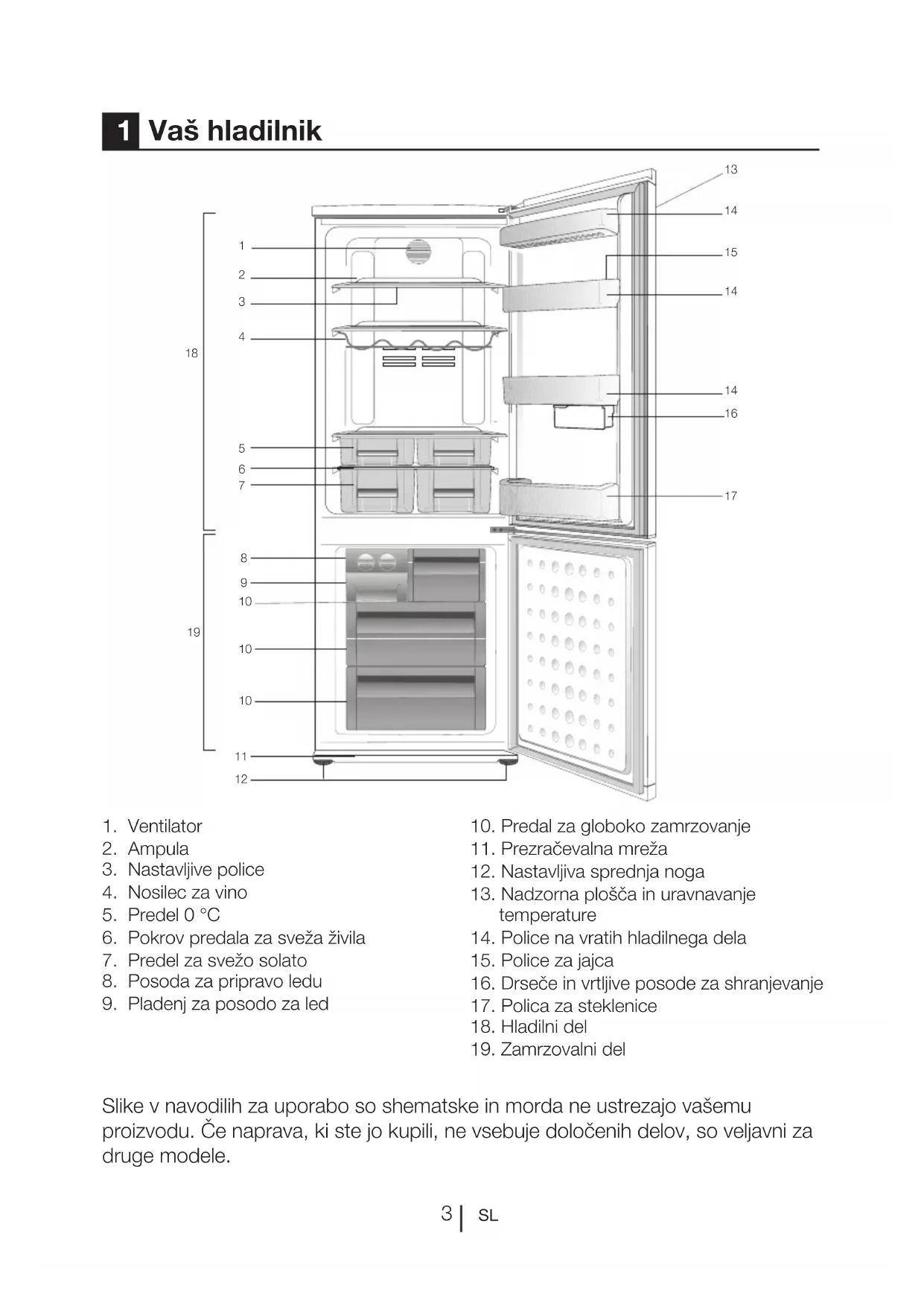 • Za ohladitev hladilnika se uporabljajo ventilatorji. To je običajno in ni napaka.