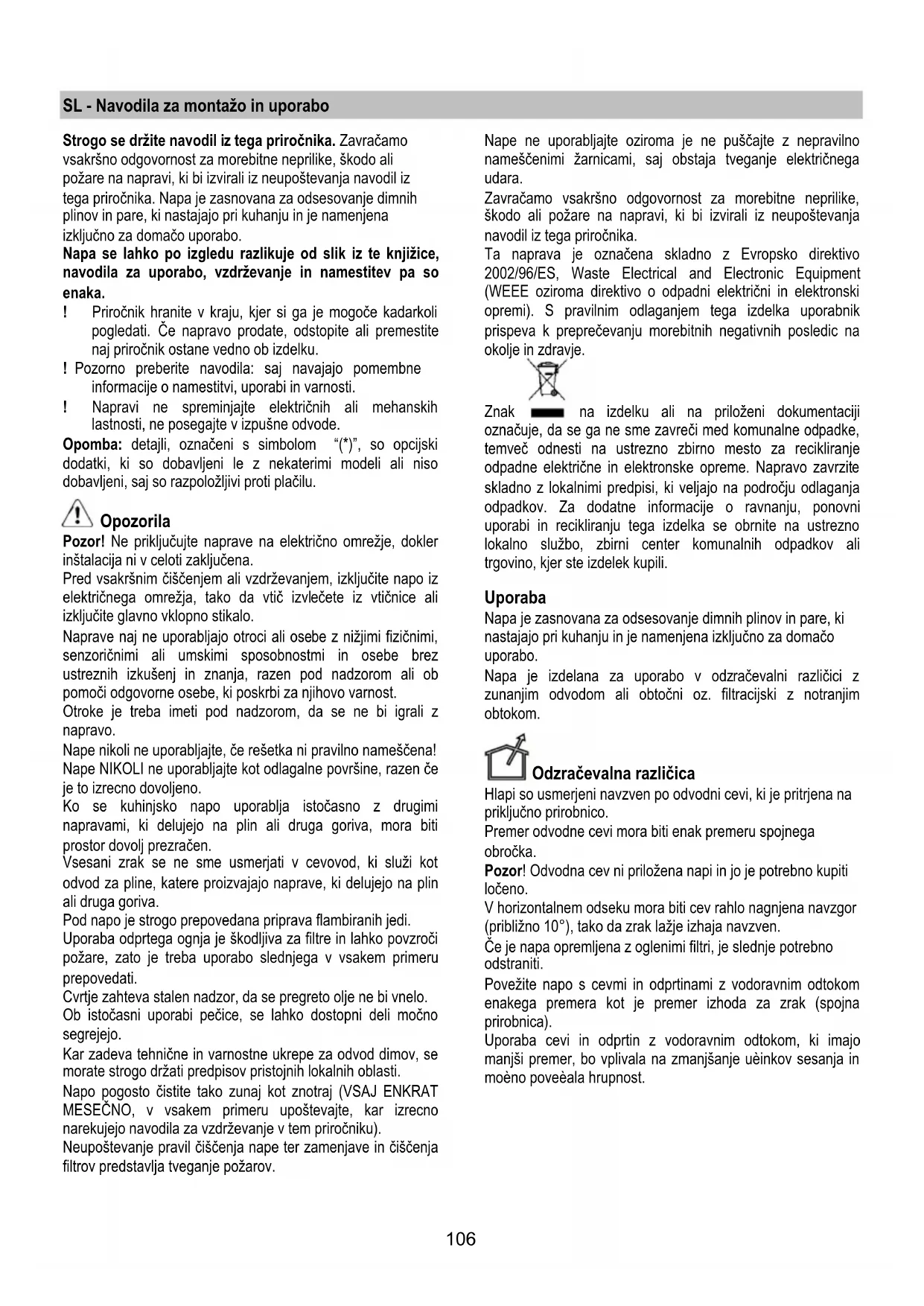 tega priročnika. Napa je zasnovana za odsesovanje dimnih