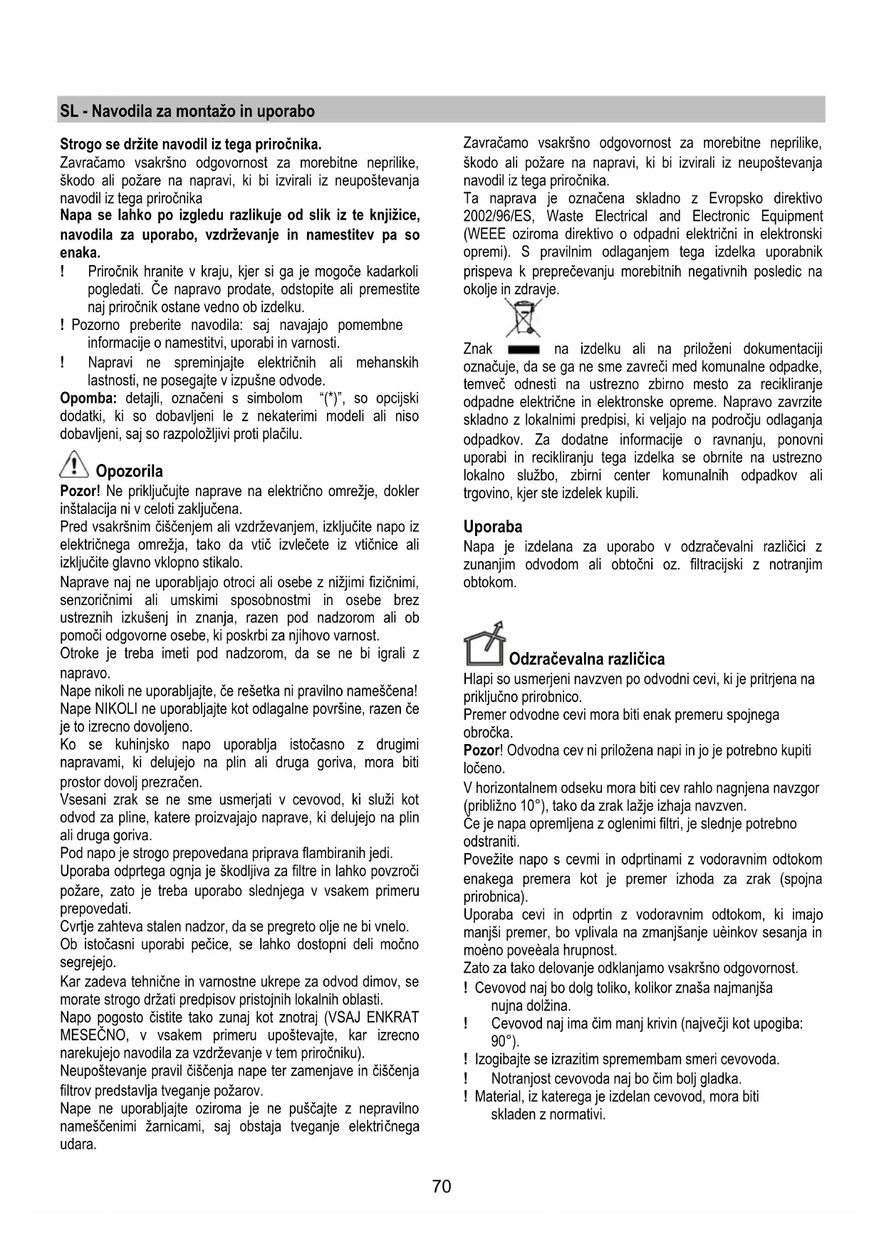 odpadne električne in elektronske opreme. Napravo zavrzite