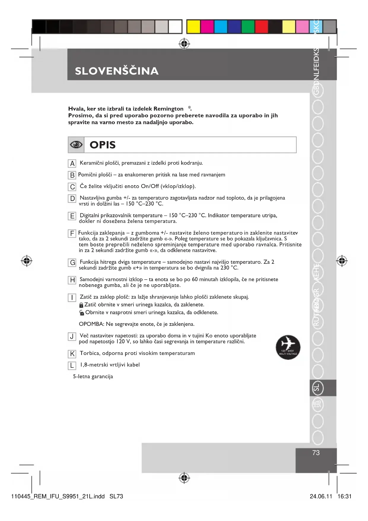 Dodatne informacije glede recikliranja najdete na www.remington-europe.com110445_REM_IFU_S9951_21L.indd SL75 24.06.11 16:3176