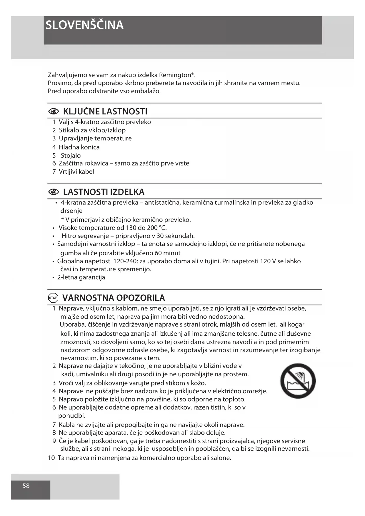 V primeru uveljavljanja garancije enostavno pokličite servisni center Remington® v svoji bližini.