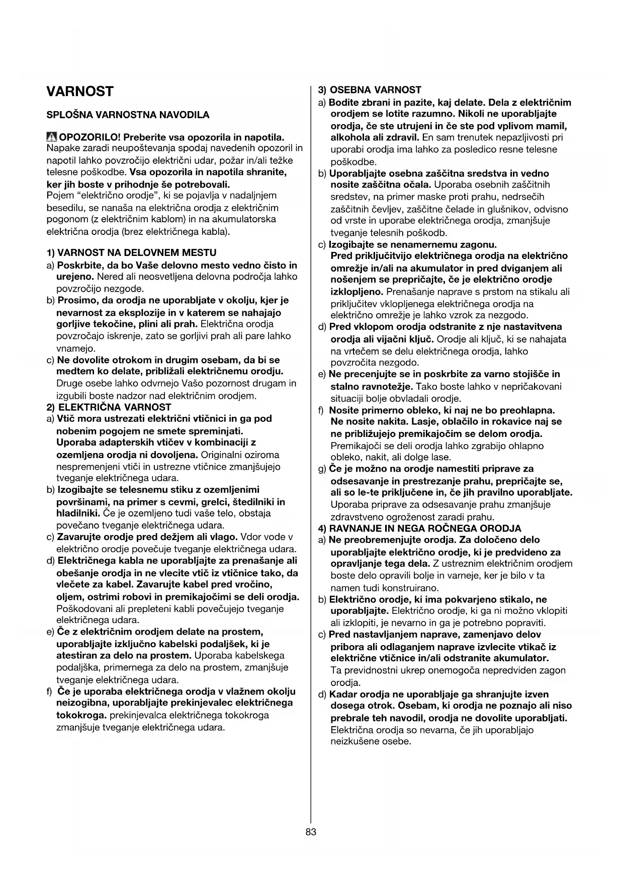 VARNOST SPLOŠNA VARNOSTNA NAVODILA OPOZORILO! Preberite vsa opozorila in napotila.