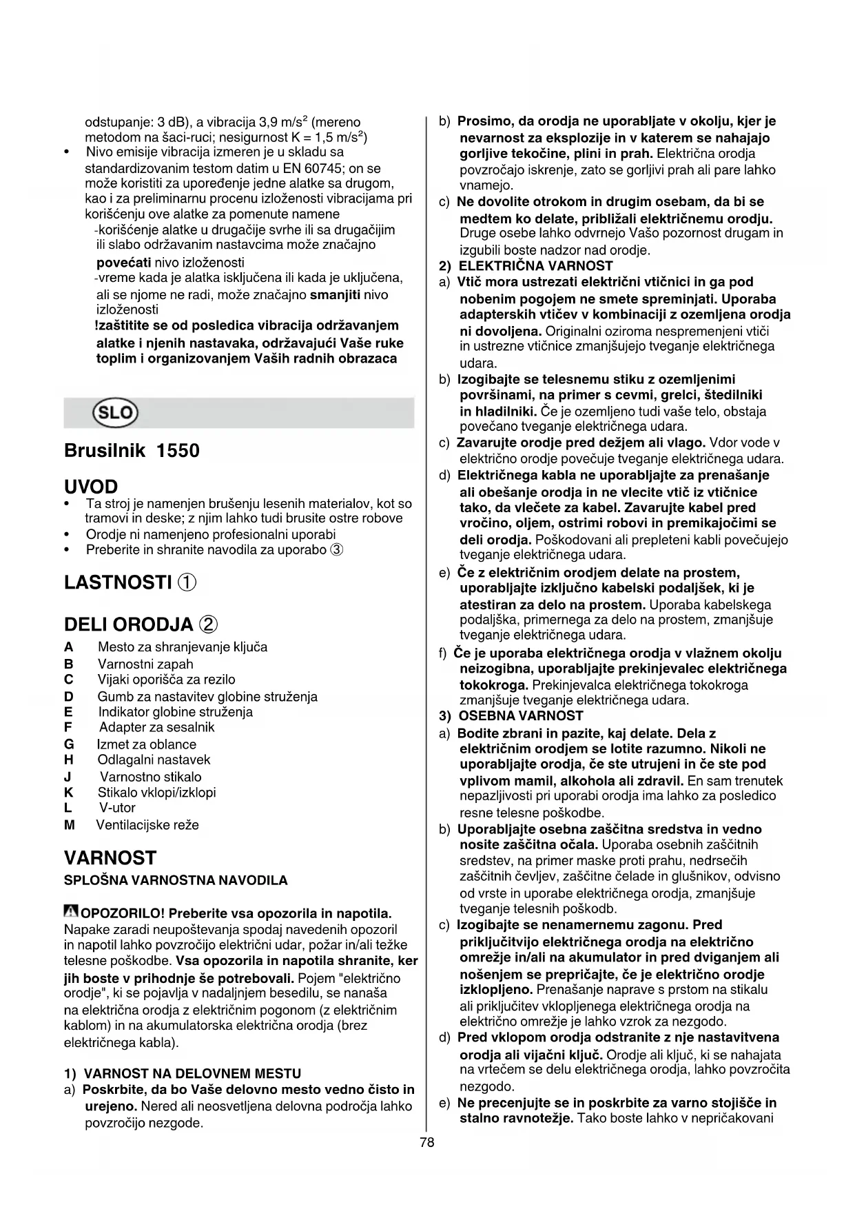 VARNOSTNA NAVODILA ZA UPORABO BRUSILNIKA SPLOŠNO