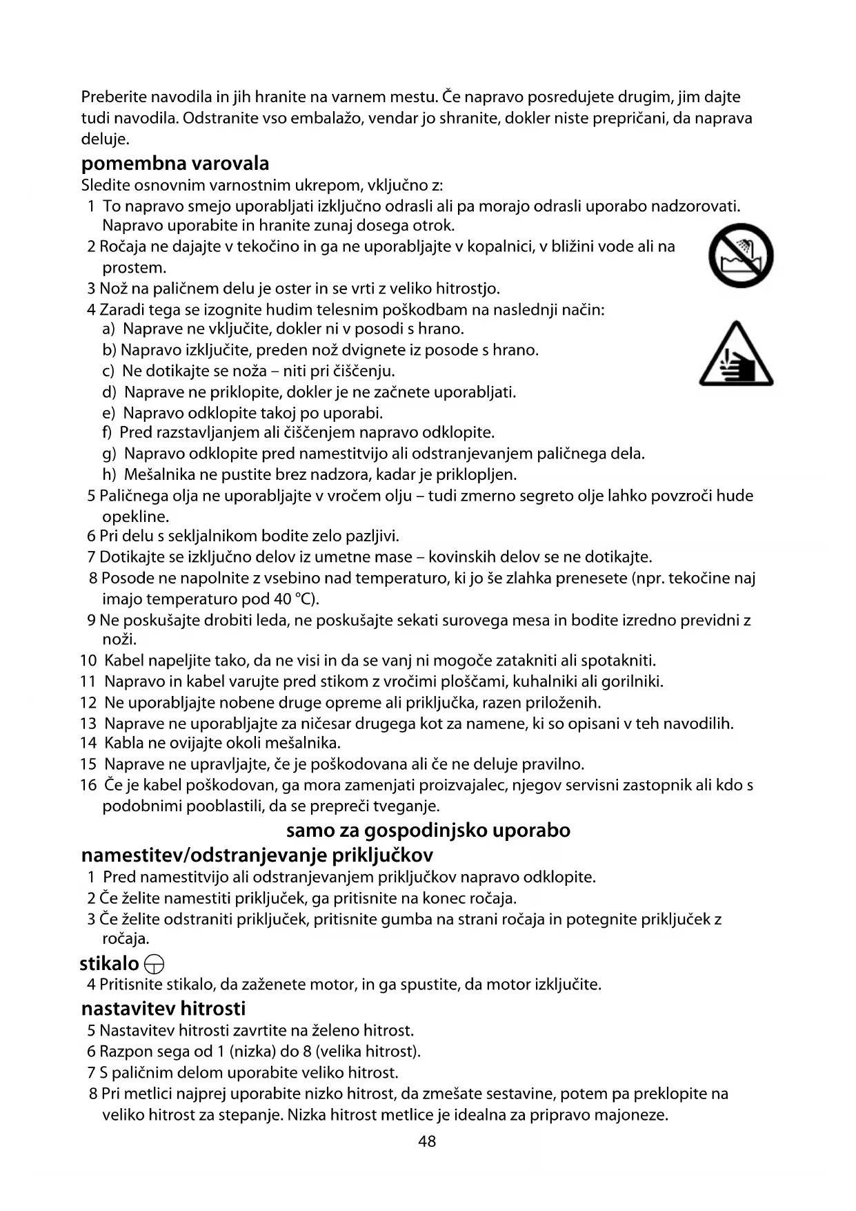 h) Mešalnika ne pustite brez nadzora, kadar je priklopljen.