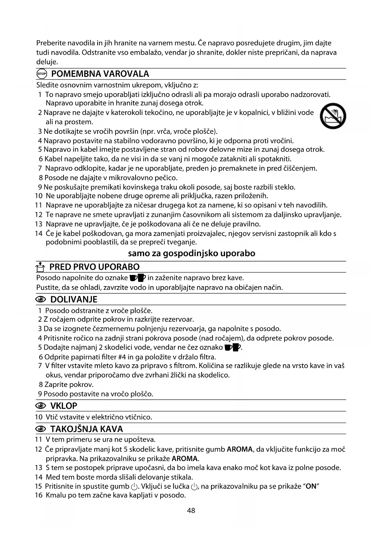 21 Če pripravljate manj kot 5 skodelic kave, pritisnite gumb AROMA, da vključite funkcijo za moč