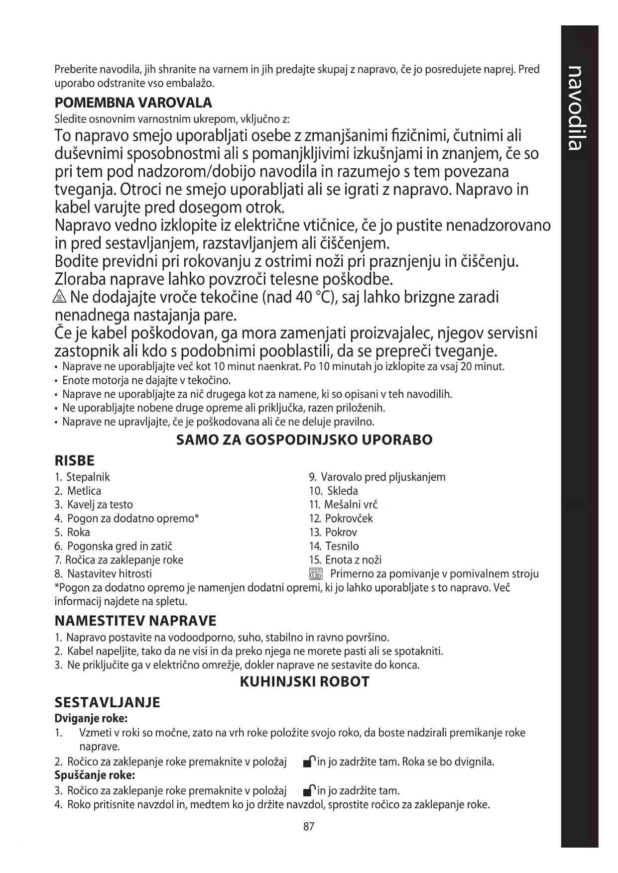 UPORABA VAŠEGA KUHINJSKEGA ROBOTA
