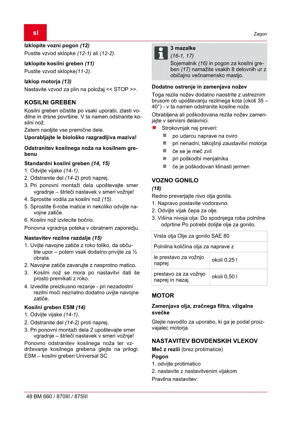 50 BM 660 / 870III / 875III GARANCIJA Morebitne napake v materialu ali izdelavi pri kosilnici bomo odpravili med zakonitim rokom zastaranja za