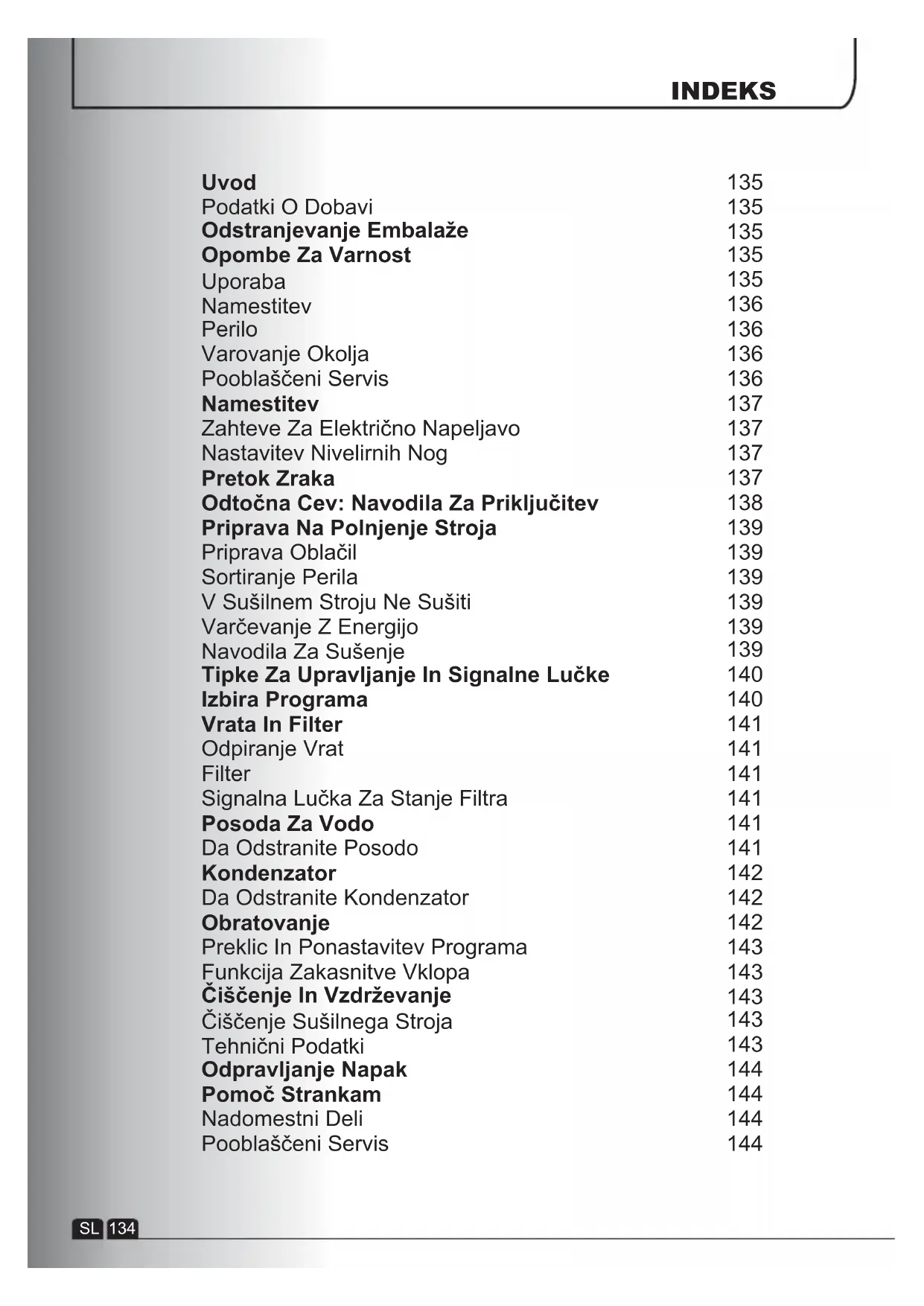 Ⴠ Ta naprava je namenjena izključno uporabi v gospodinjstvih, z njo lahko sušite le gospodinjski